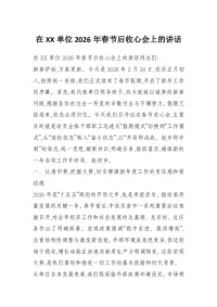 XX乡镇党委书记在2026年春节后收心会上的讲话4