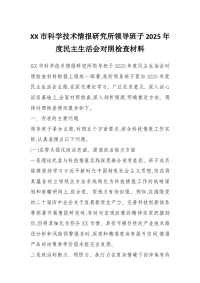 XX市科学技术情报研究所领导班子2025年度民主生活会对照检查材料