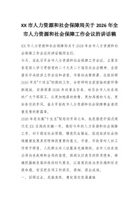 XX市人力资源和社会保障局关于2026年全市人力资源和社会保障工作会议的讲话稿