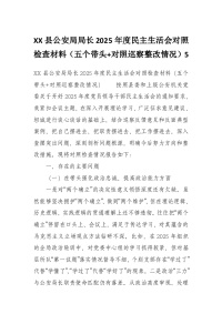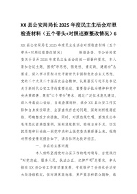 XX县公安局局长2025年度民主生活会对照检查材料(五个带头+对照巡察整改情况)5