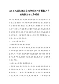 XX县巩固拓展脱贫攻坚成果同乡村振兴有效衔接五年工作总结