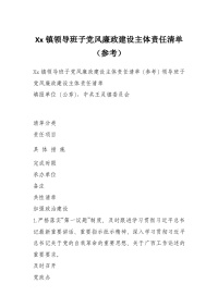 Xx镇领导班子党风廉政建设主体责任清单(参考)2