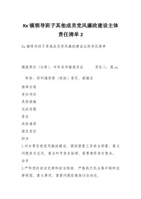 Xx镇领导班子其他成员党风廉政建设主体责任清单2