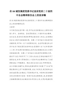 在XX城发集团党委书记宣讲党的二十届四中***精神报告会上的宣讲稿