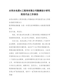 水利水电第X工程局有限公司勘测设计研究院党代会工作报告