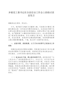 乡镇党工委书记在全县信访工作会上的检讨表态发言
