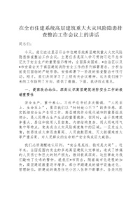 在全市住建系统高层建筑重大火灾风险隐患排查整治工作会议上的讲话