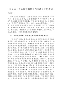 市委书记在全市十五五规划编制意见建议座谈会上的讲话