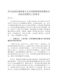 在全县高层建筑重大火灾风险隐患排查整治行动动员部署会上的讲话
