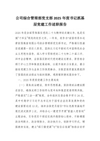 公司综合管理部党支部2025年度书记抓基层党建工作述职报告