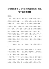 公司党支部学习《***谈治国理政》第五卷专题党课讲稿