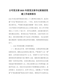 公司党支部2025年度党支部书记抓基层党建工作述职报告