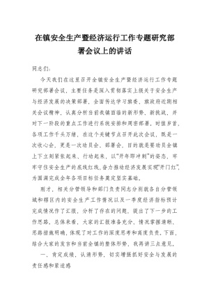 在镇安全生产暨经济运行工作专题研究部署会议上的讲话