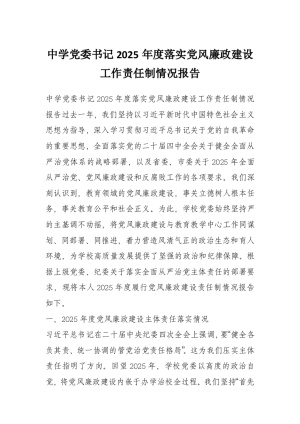 中学党委书记2025年度落实党风廉政建设工作责任制情况报告