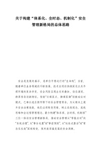 关于构建“体系化、全时态、机制化”安全管理新格局的总体思路