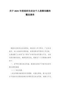 关于2025年度组织生活会个人查摆问题的整改清单