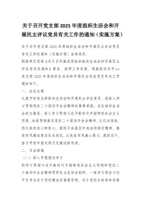 关于召开党支部2025年度组织生活会和开展民主评议党员有关工作的通知(实施方案)