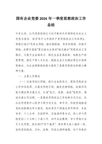 国有企业党委2026年一季度思想政治工作总结