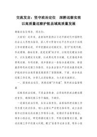 交流发言:坚守政治定位 深耕巡察实效 以高质量巡察护航县域高质量发展