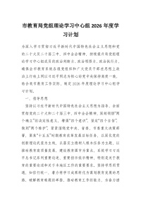 市教育局党组理论学习中心组2026年度学习计划