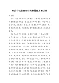 市委书记在全市动员部署会上的讲话
