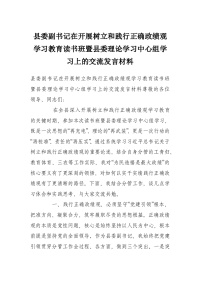 县委副书记在开展树立和践行正确政绩观学习教育读书班暨县委理论学习中心组学习上的交流发言材料