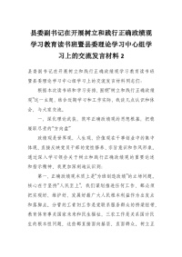 县委副书记在开展树立和践行正确政绩观学习教育读书班暨县委理论学习中心组学习上的交流发言材料2