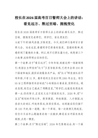 校长在2026届高考百日誓师大会上的讲话:看见远方、熬过至暗、拥抱变化