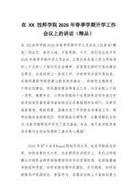 在 XX 技师学院2026年春季学期开学工作会议上的讲话(精品)