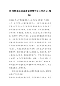 在2026年全市高质量发展大会上的讲话(精品)
