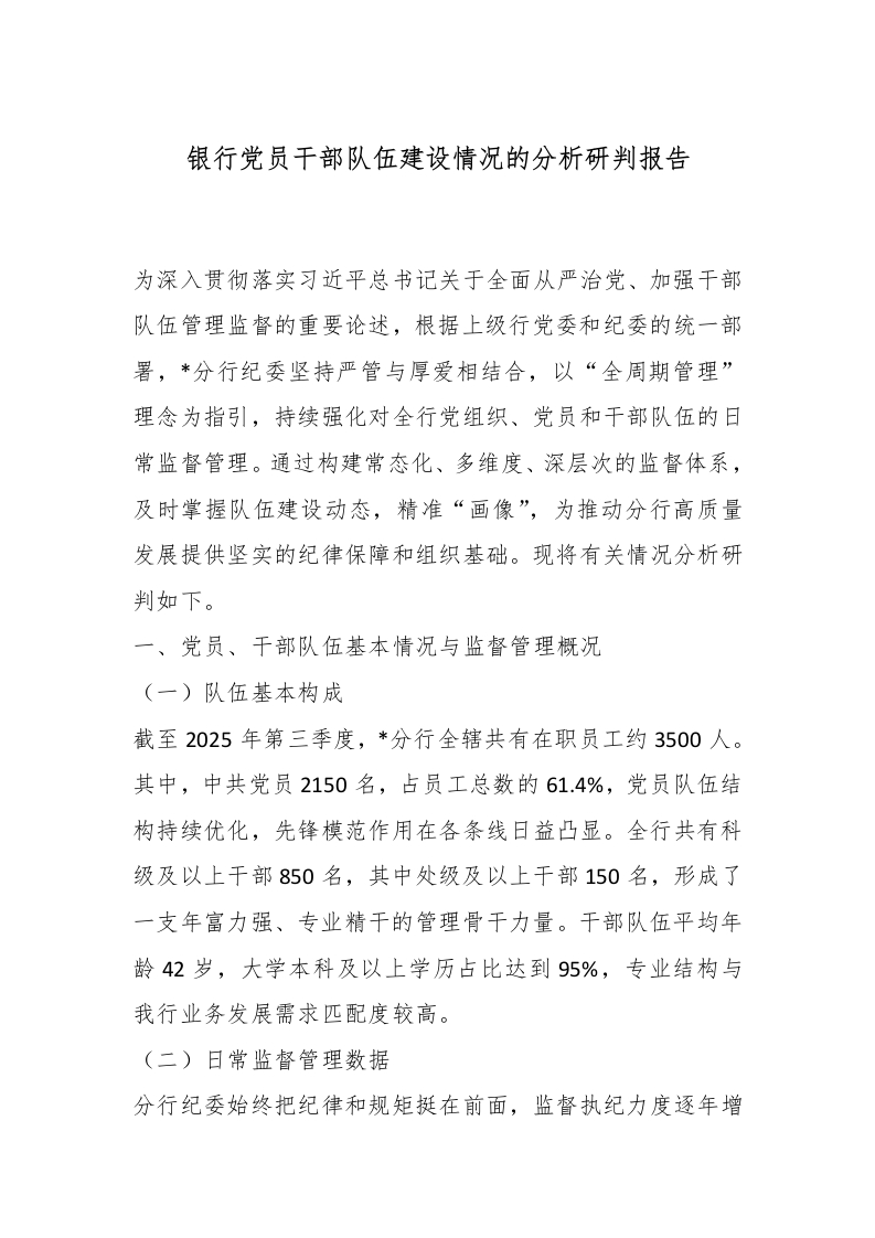 首页精选范文银行党员干部队伍建设情况的分析研判报告_副本
