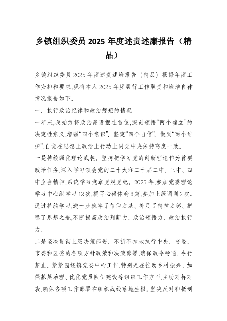 首页材料汇编乡镇组织委员2025年度述责述廉报告(精品)