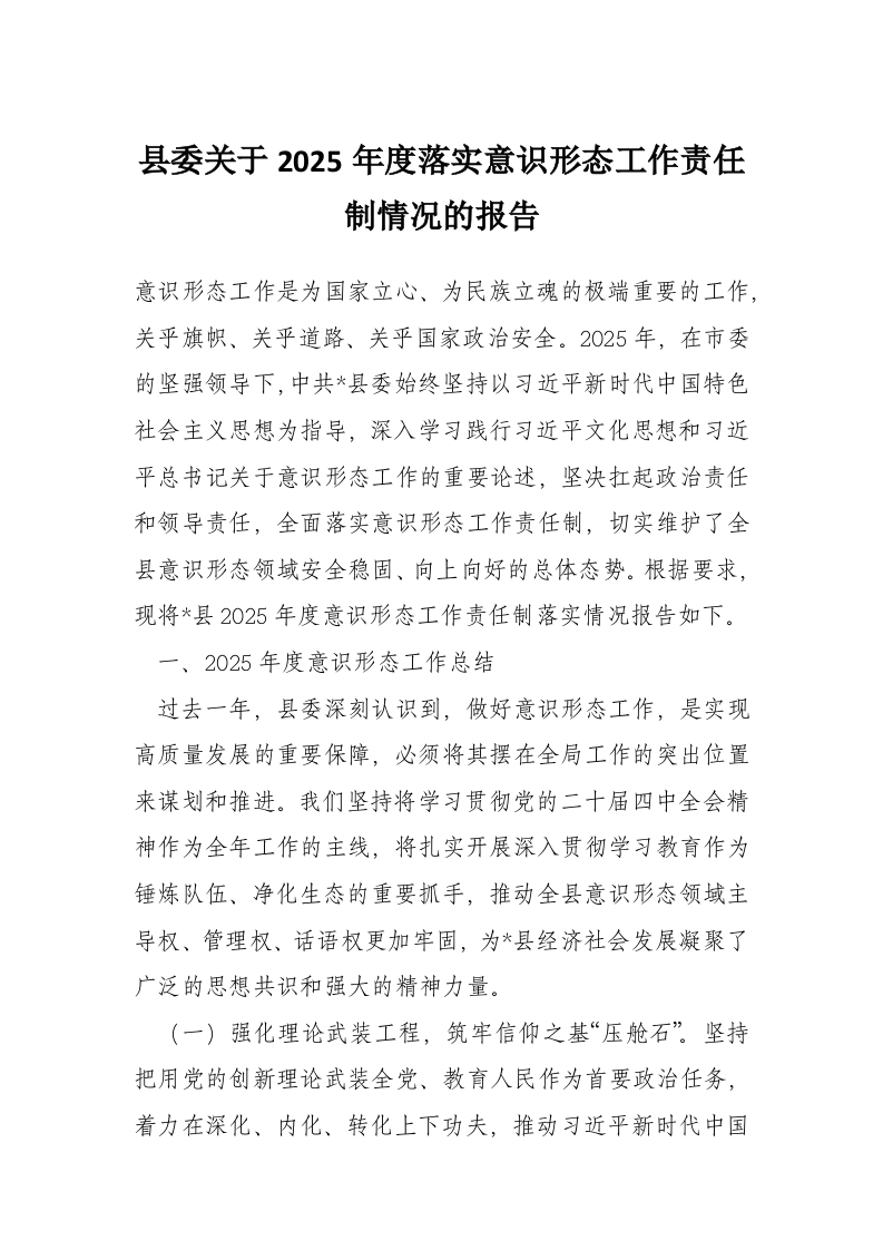 首页材料汇编县委关于2025年度落实意识形态工作责任制情况的报告