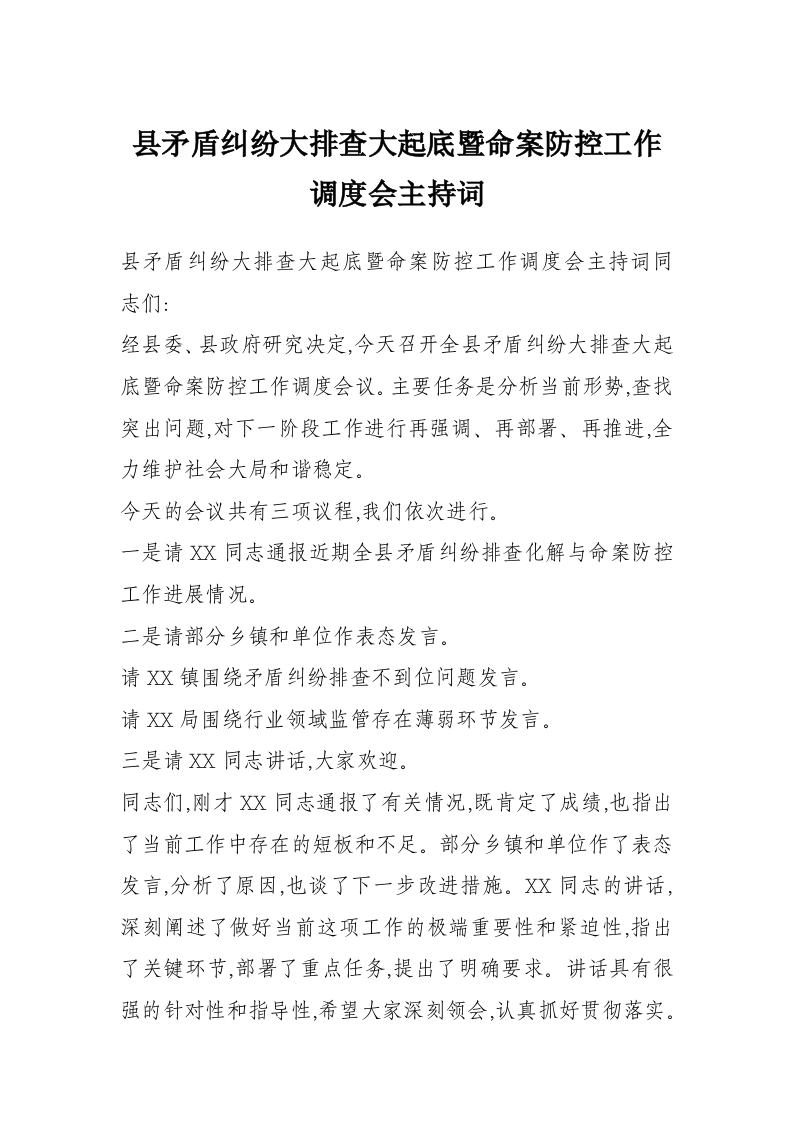 县矛盾纠纷大排查大起底暨命案防控工作调度会主持词