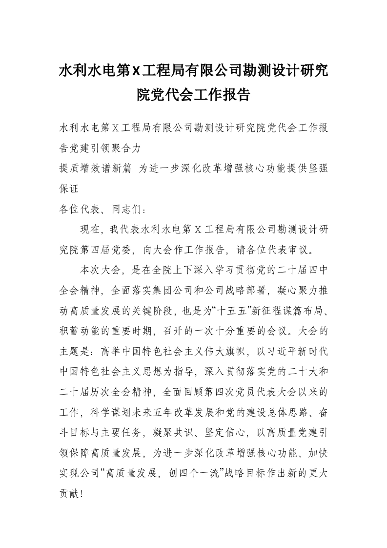 水利水电第X工程局有限公司勘测设计研究院党代会工作报告