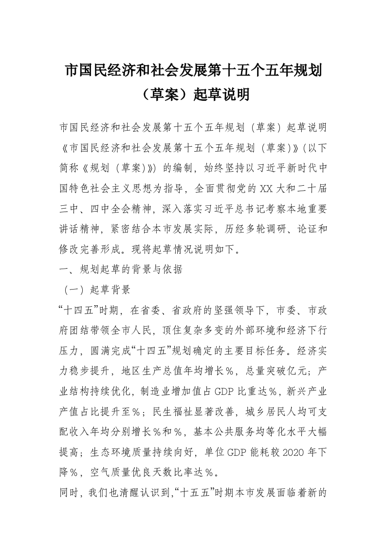市国民经济和社会发展第十五个五年规划(草案)起草说明