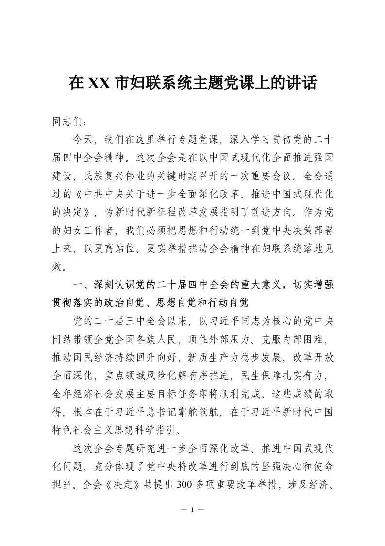 首页讲课讲稿在XX市妇联系统主题党课上的讲话