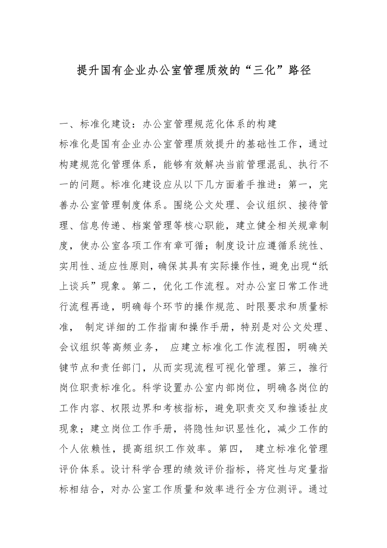 提升国有企业办公室管理质效的“三化”路径_副本