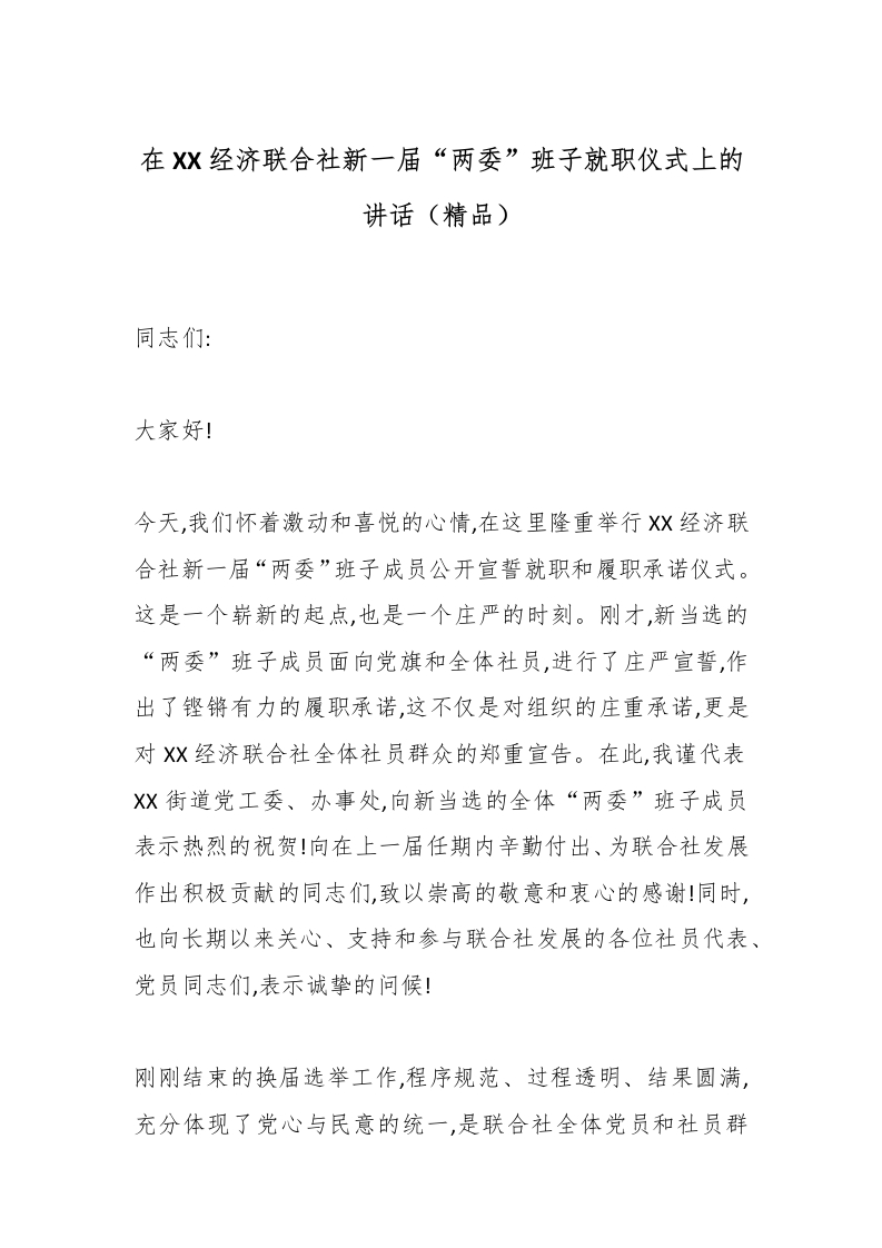 在XX经济联合社新一届“两委”班子就职仪式上的讲话(精品)_副本