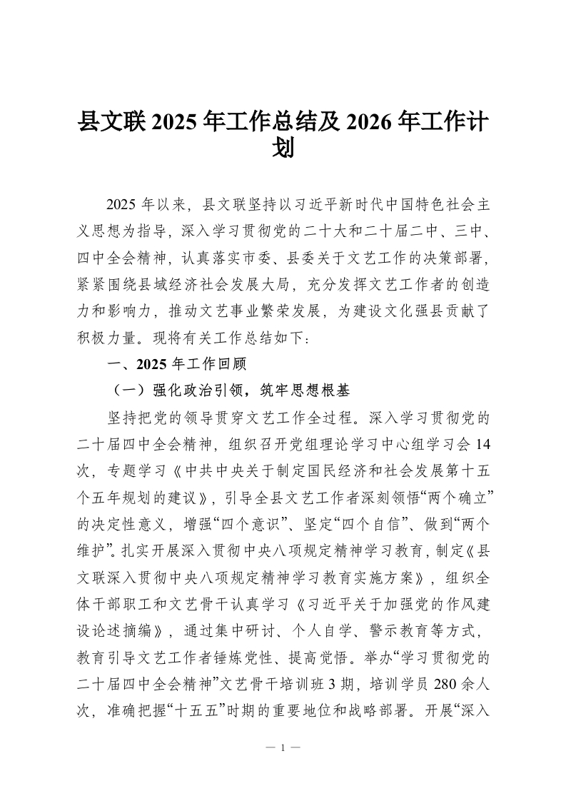 首页讲课讲稿县文联2025年工作总结及2026年工作计划