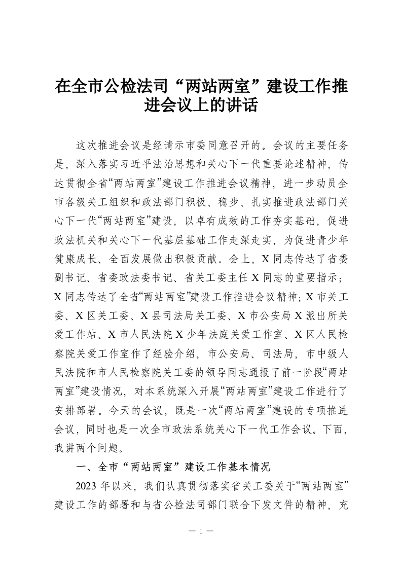 在全市公检法司“两站两室”建设工作推进会议上的讲话