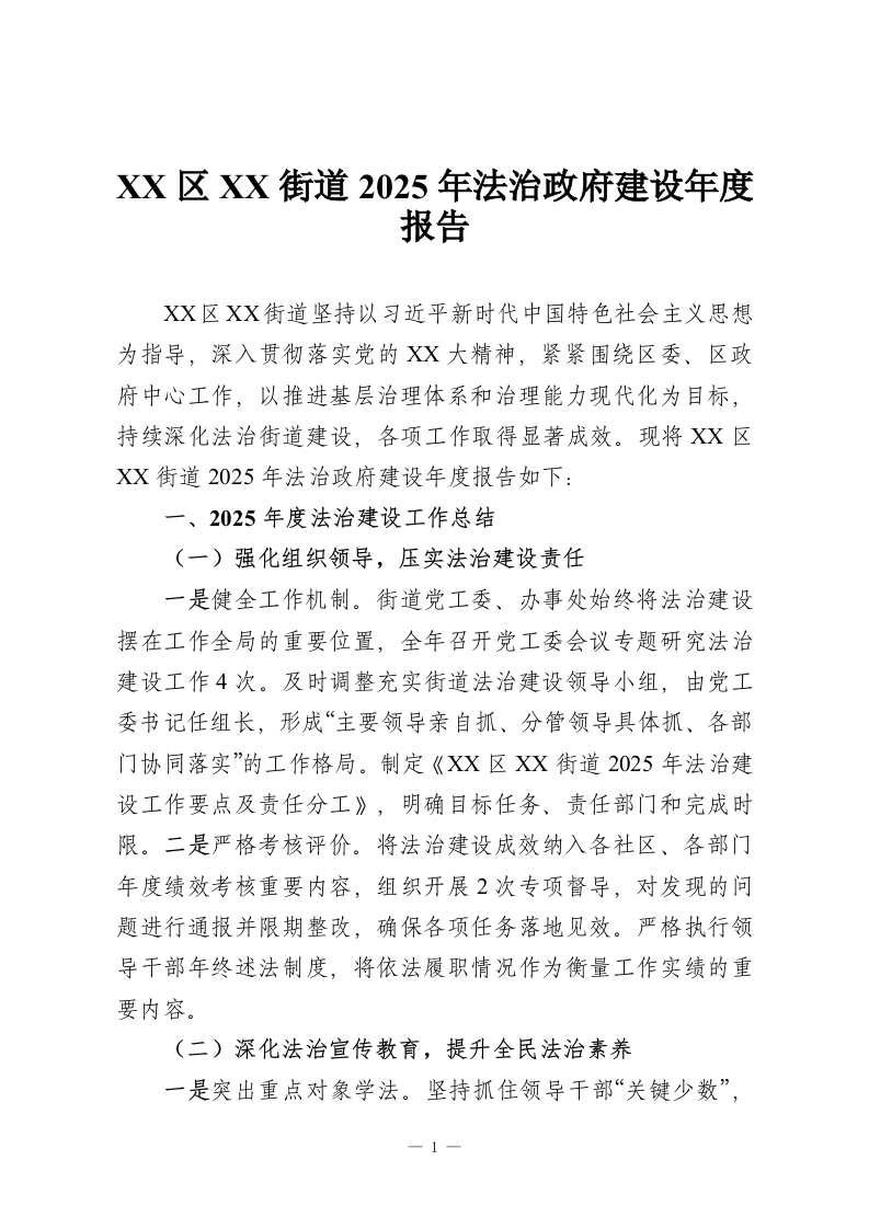 首页讲课讲稿XX区XX街道2025年法治***建设年度报告
