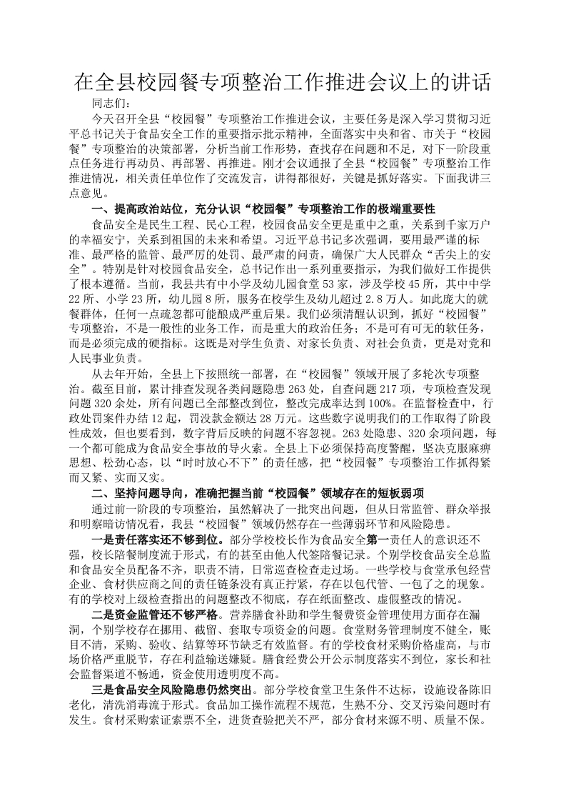 首页材料汇编在全县校园餐专项整治工作推进会议上的讲话