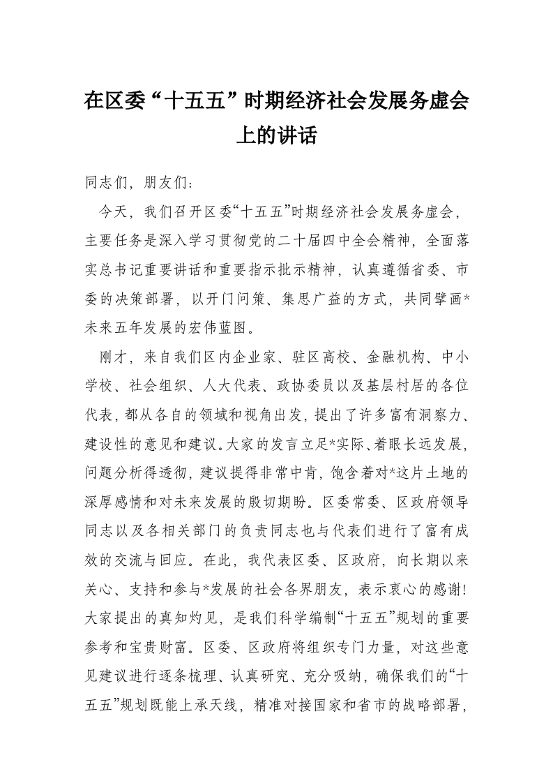 在区委“十五五”时期经济社会发展务虚会上的讲话