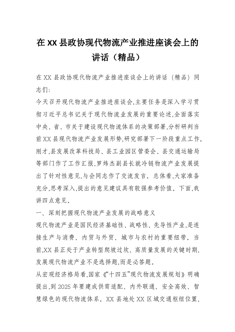 在XX县政协现代物流产业推进座谈会上的讲话(精品)