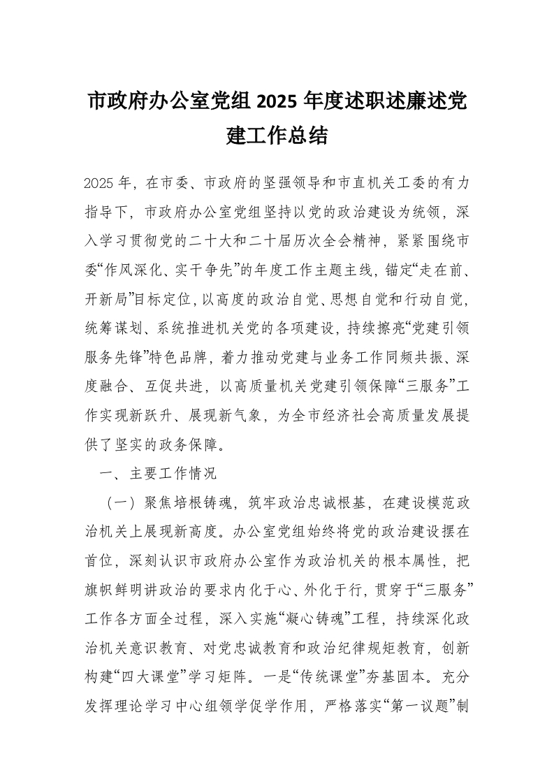 首页讲课讲稿市***办公室党组2025年度述职述廉述党建工作总结