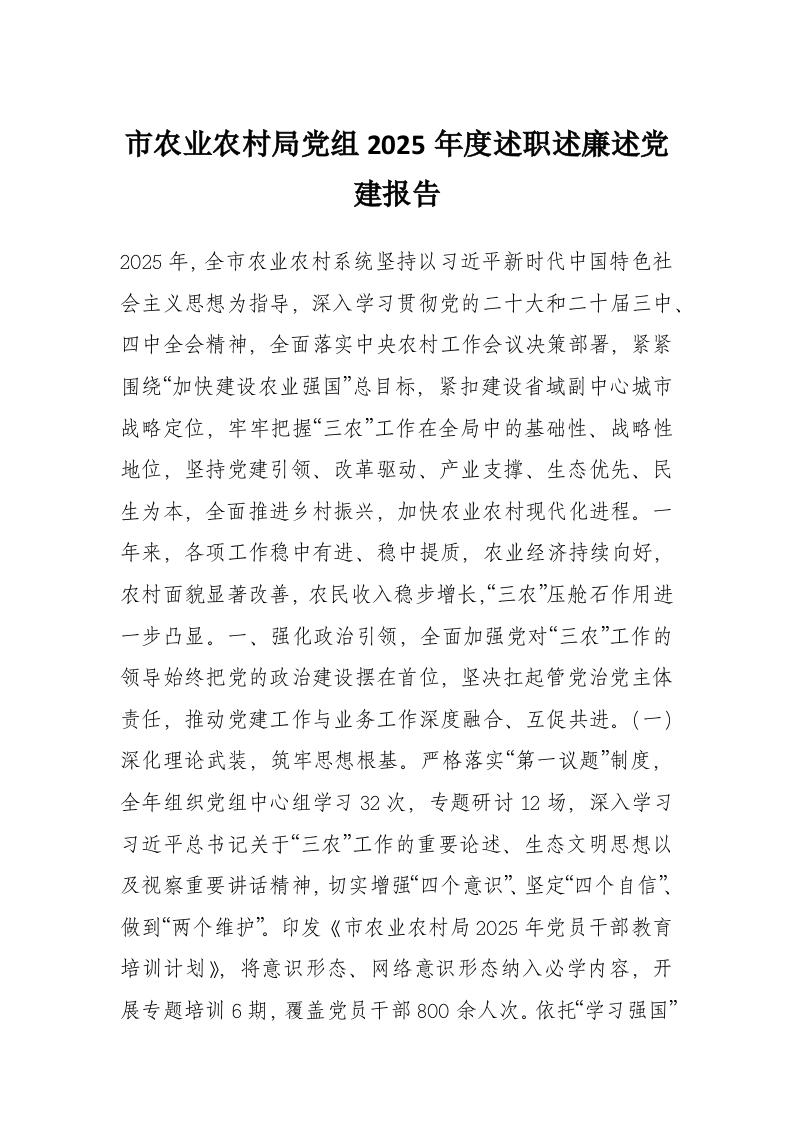 首页讲课讲稿市农业农村局党组2025年度述职述廉述党建报告