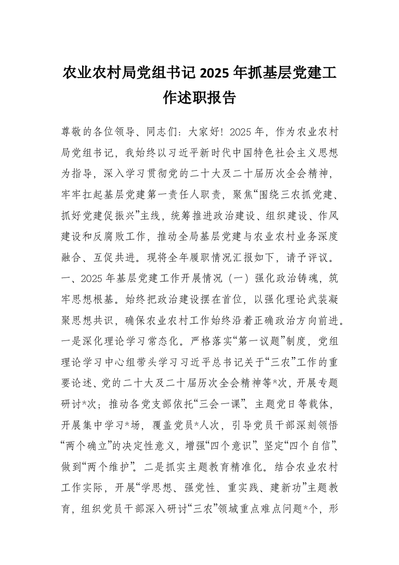 首页讲课讲稿农业农村局党组书记2025年抓基层党建工作述职报告