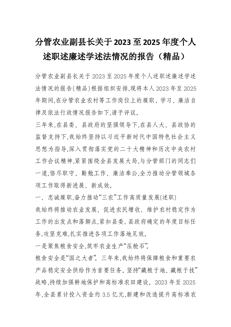 首页材料汇编分管农业副县长关于2023至2025年度个人述职述廉述学述法情况的报告(精品)