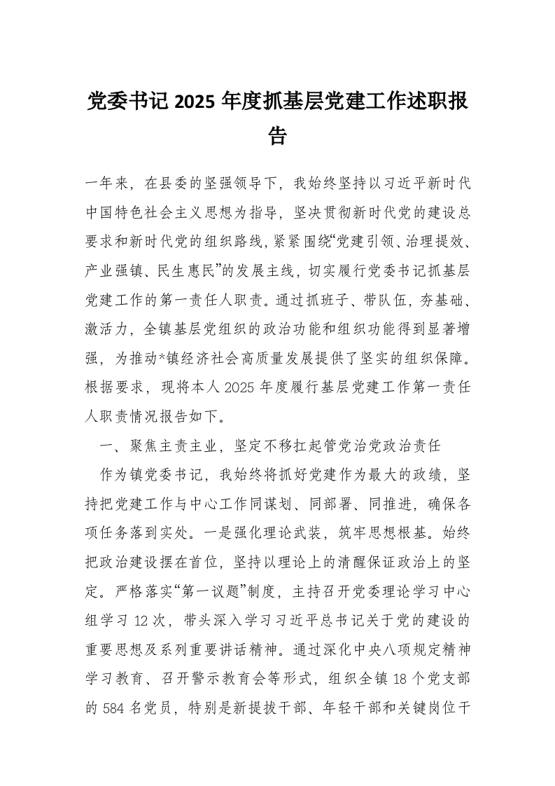 首页材料汇编党委书记2025年度抓基层党建工作述职报告